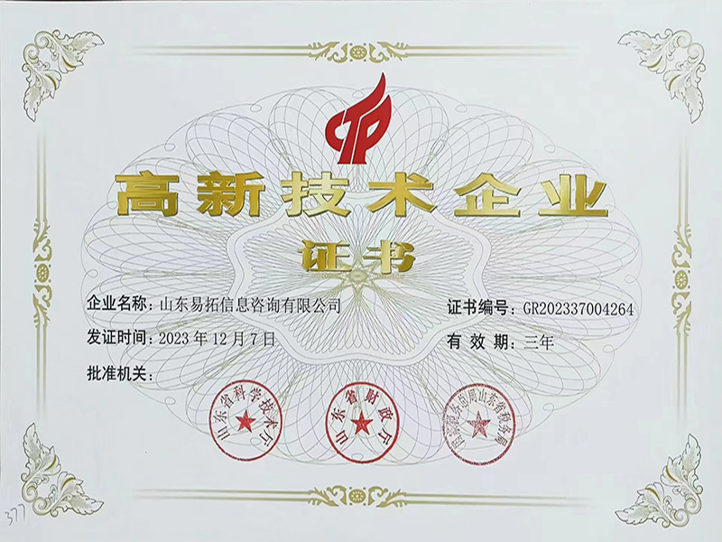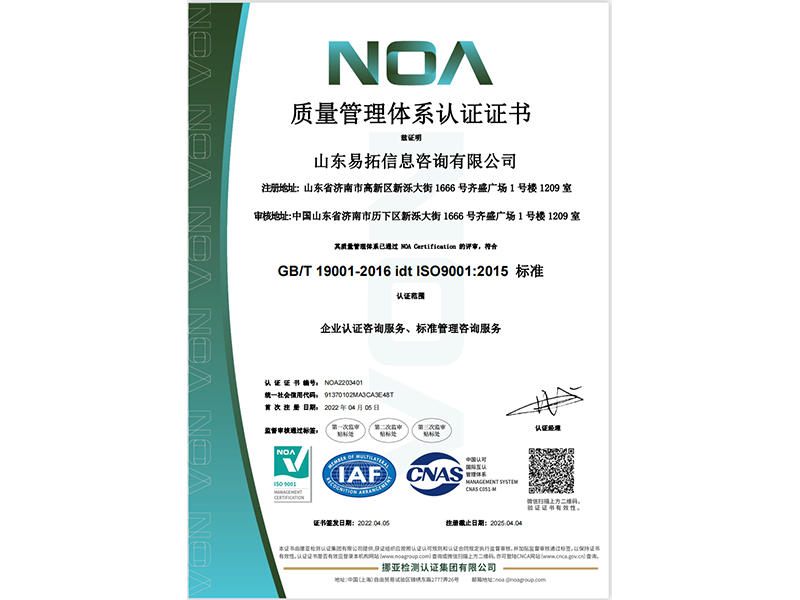 山东易拓信息咨询有限公司成立于2016年5月,是国内主要从事标准化与合规咨询服务的专业技术机构,业务涵盖培训、标准化咨询、管理体系认证咨询、IT管理咨询和数字经济咨询等领域。公司是企业信用评价AAA级信用企业、国家高新技术企业、并通过ISO9001质量管理体系认证,同时是全国信息技术标准化技术委员会大数据工作组成员单位、全国智能建筑及居住区数字化标准化技术委员会智慧园区、城市综合管理标准化工作组成员单位、中国电子工业标准化技术协会数据管理应用推进分会理事单位、山东省电子商务协会常任理事单位、山东省大数据协会成员单位。2022年公司成为山东省数字化赋能服务机构,2023年成为聊城市中小企业数字化转型服务机构。