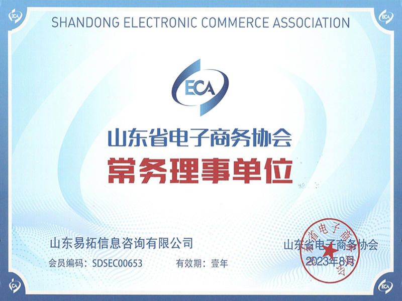 山东省电子协会常任理事单位证书